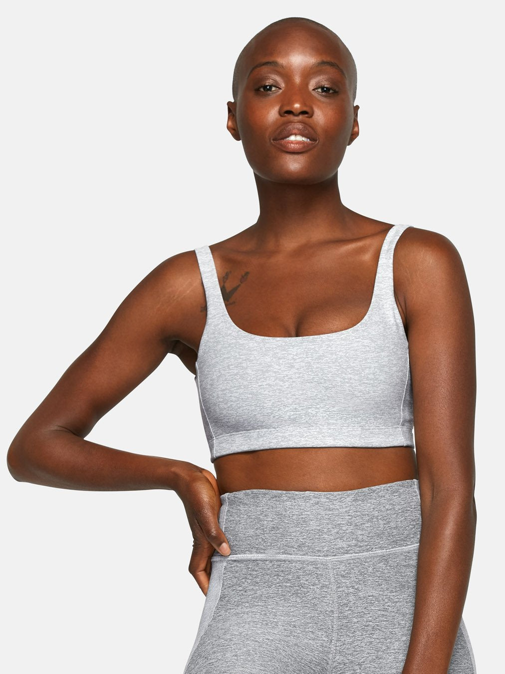 A snug, low support feminine double scoop sports bra made in durable, mid-weight Textured Compression.